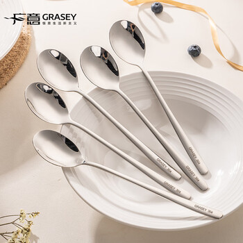 广意304不锈钢勺子吃饭汤勺汤匙 家用餐勺长柄调羹大号5只装GY7583