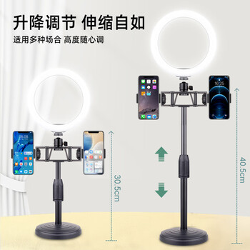 徕兹 手机支架桌面直播补光灯主播美颜灯网红嫩肤打光灯抖音视频录制多功能可升降伸缩双机位手机架
