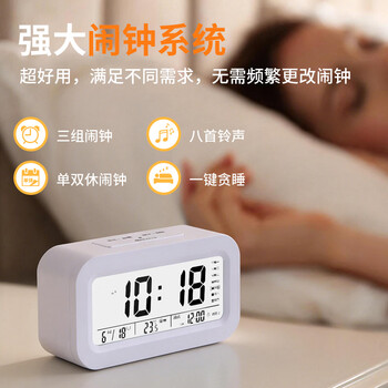 康巴丝(Compas)电子闹钟夜光智能语音报时起床神器闹铃强力叫醒儿童学生床头钟开学必备 2139 蓝色 开学季
