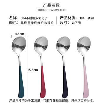 拾画 304不锈钢勺子4只装 分食分餐饭勺甜品勺子调羹汤勺大圆勺