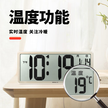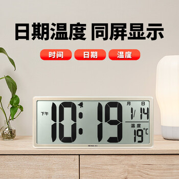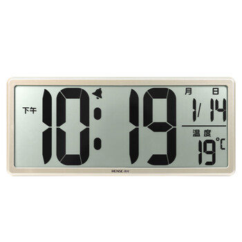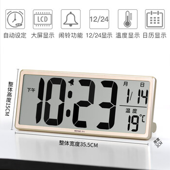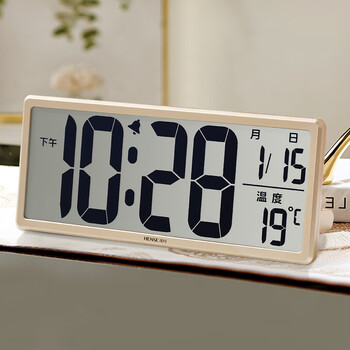 汉时(Hense)创意电子钟万年历大屏挂钟台钟液晶显示闹钟客厅座钟HA88金色36cm开学季