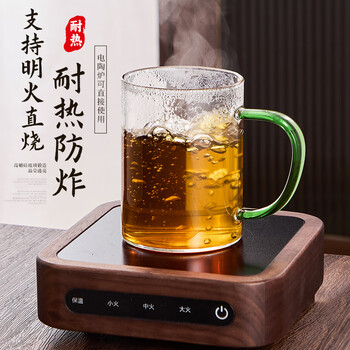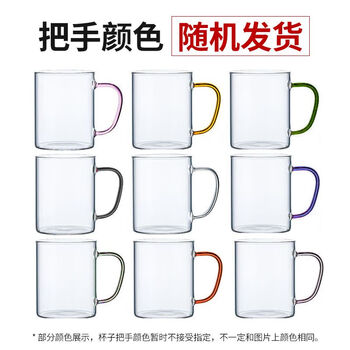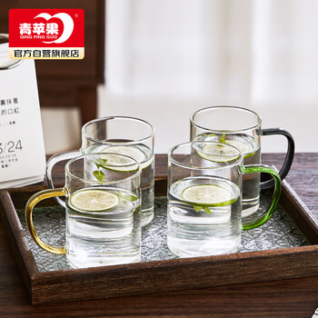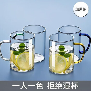 青苹果耐热玻璃水杯465ml四只 四色把手围炉煮茶杯牛奶杯一人一杯不混杯