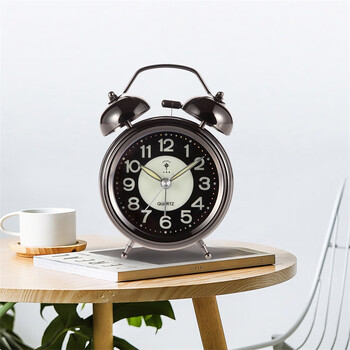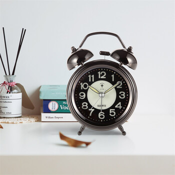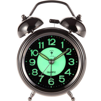 北极星(POLARIS)闹钟复古石英钟表个性夜光创意学生儿童闹铃卧室床头夜灯打铃闹表6008黑镍【开学季】