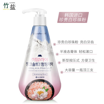 竹盐LG派缤按压式牙膏粉盐285g*1瓶莹雪花香洁白牙齿减轻牙渍