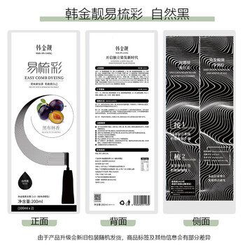 韩金靓 易梳彩自然黑色可盖白发黑发染发剂200ml男女士流行色一梳黑