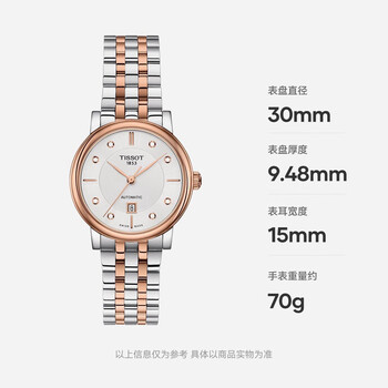 天梭(TISSOT) 卡森臻我系列女表 瑞士自动机械女士钢带腕表商务表生日礼物