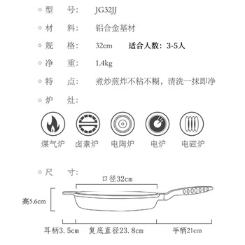 炊大皇平底不粘锅麦饭石色加大牛排煎锅32cm煎蛋饼磁炉通用巨匠JG32JJ