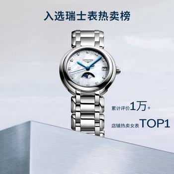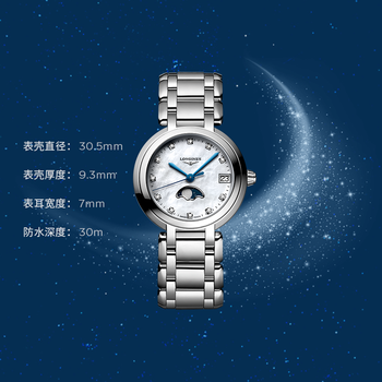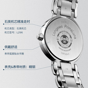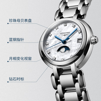 浪琴(LONGINES)瑞士手表 心月系列 月相女士钢带石英表L81154876