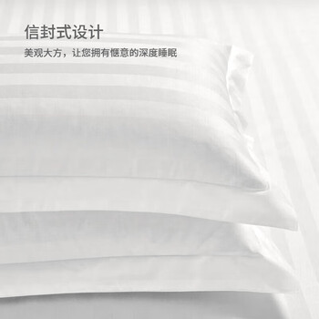 然牌 全棉枕套 酒店枕头套 纯棉枕芯套 白色缎条 一对装48x74cm
