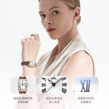 依波路(ERNEST BOREL)瑞士女士手表 女神节礼物 雅仕系列专柜同款 酒桶皮带石英女表