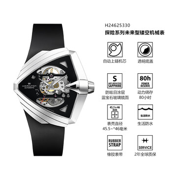 汉米尔顿(Hamilton)探险系列未来型盾型镂空机械表橡胶带 瑞士手表男士高端手表腕表