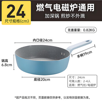 炊大皇平底煎锅 锅炒菜锅加深加高牛排煎锅多功能锅 电磁炉通用24cm