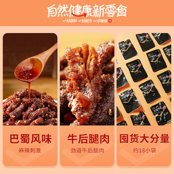 良品铺子巴蜀牛肉麻辣味400g 四川牛肉干牛肉条 解馋冷吃 休闲零食