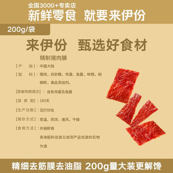 来伊份居司令猪肉脯原味200g靖江风味手撕猪肉干高蛋白解馋休闲零食