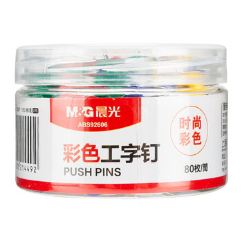 晨光(M&G)文具彩色图钉 PVC筒装软木画板按钉 办公工字钉 大头钉 80枚/筒ABS92606