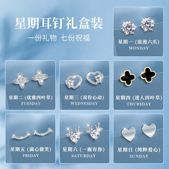 N2it银针一周耳钉礼盒星期耳钉女士套装养耳洞女生生日礼物送女朋友