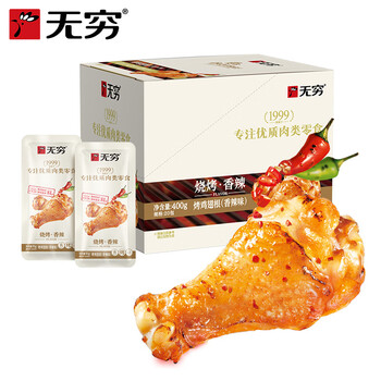 无穷 爱辣烤味小鸡腿香辣味烤鸡翅根400g 宿舍休闲零食年货礼盒聚餐