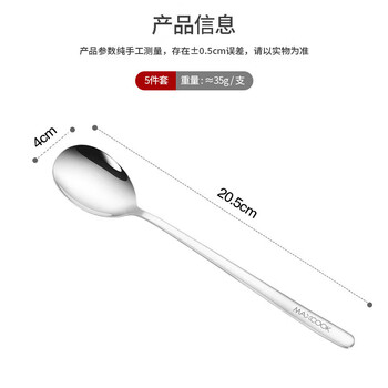美厨(maxcook)不锈钢汤勺汤匙 加大加厚勺子圆勺餐勺饭勺调羹 5件套MCGC0477