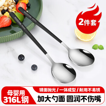 美厨(maxcook)316L不锈钢汤勺汤匙 加大勺子餐勺饭勺调羹 2件套黑色MCGC0217