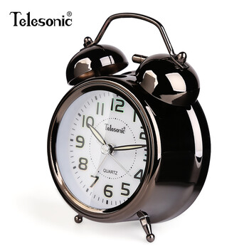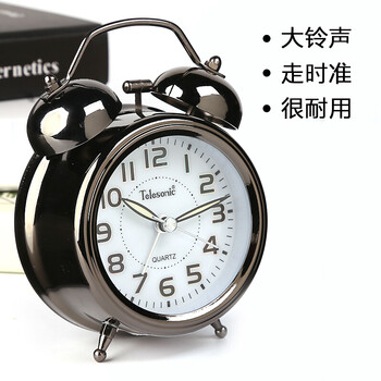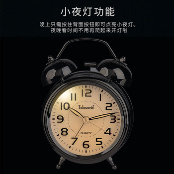 天王星(Telesonic)闹钟创意学生儿童大铃声闹表卧室床头简约夜光扫秒机芯传统时钟开学季礼物开学季