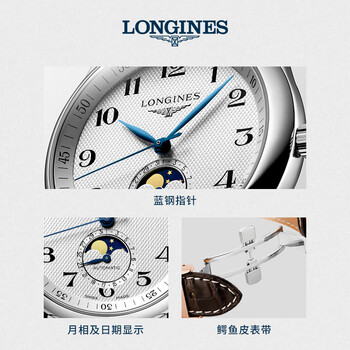 浪琴(LONGINES)瑞士手表 名匠系列月相腕表 男士皮带机械表L29094783