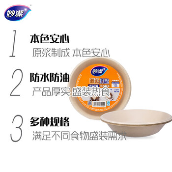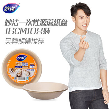 妙洁一次性盘子16cm*10只装 源蔗纸盘本色安心盒饭盘碗筷餐具烧烤碟6