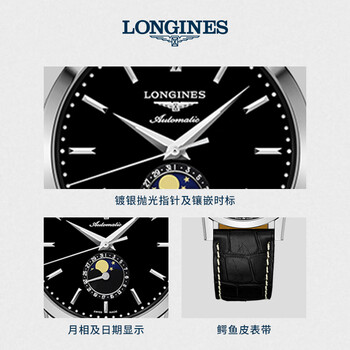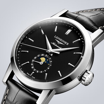 浪琴(LONGINES)瑞士手表 1832系列 月相男士皮带机械表 L48264520
