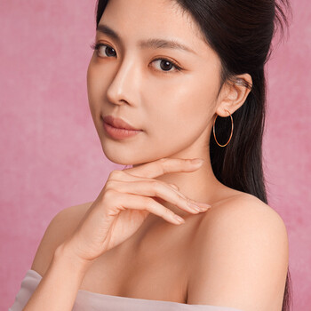 周六福18K金耳环女 彩金圆环耳饰 KI096010 小款 生日礼物