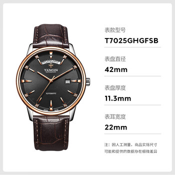 天珺(TANGIN)瑞士手表男 机械男士手表皮带瑞表 送男友 T7025GHGFSB