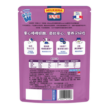 百吉福(MILKANA)全新上市棒棒奶酪儿童奶酪棒 果心葡萄夹心味 100g/袋
