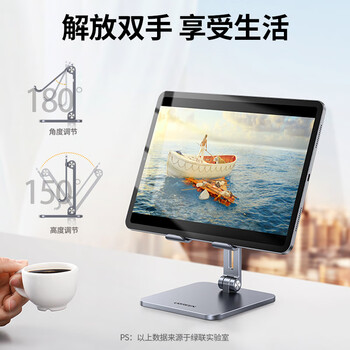 绿联手机支架桌面 铝合金iPad平板支架懒人床头直播游戏吃鸡网课追剧全金属结实耐用折叠便携