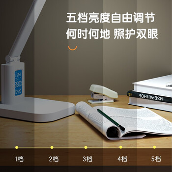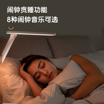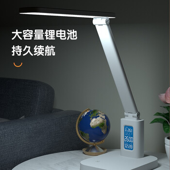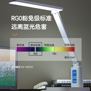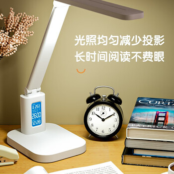 得力(deli)LED折叠台灯 时间温度日期同屏显示带闹钟 RG0级减蓝光 床头宿舍书桌工作台灯