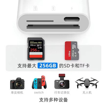 JOWOYE苹果手机读卡器SD单反相机TF内存卡iPhone转接头lighting快充ipad air平板OTG行车记录仪监控转换
