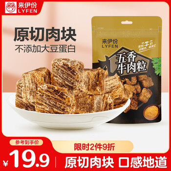 来伊份牛肉粒五香味80g即食牛肉干解馋肉干肉脯独立小包装休闲零食