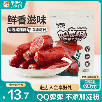 来伊份碳烤迷你小香肠烧烤味125g肉肠火腿肠肉干独立包装休闲零食