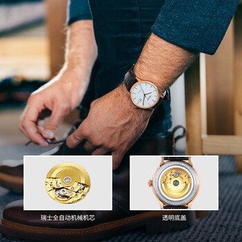 天珺(TANGIN)男士机械表 日历全自动进口瑞士手表男机械 送男友 T7037GKWFSB