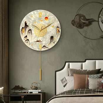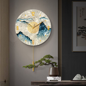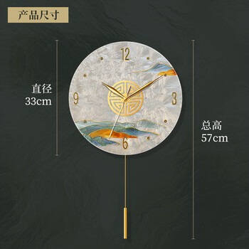 码仕 挂钟新中式琉璃珐琅彩手工彩绘客厅装饰摆钟石英挂表旭日 33cm