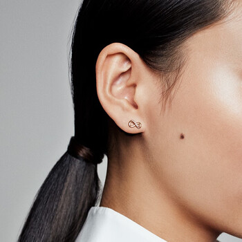 潘多拉(PANDORA)闪亮永恒符号耳钉玫瑰金色精致小巧高级生日送女友