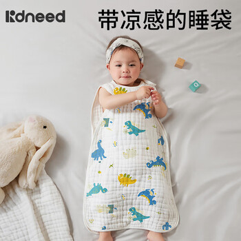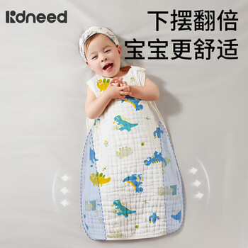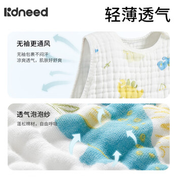 柯斯德尼(kidsneed)婴儿睡袋新生儿纯棉纱布无袖背心宝宝春秋护肚睡衣防踢被四层L码