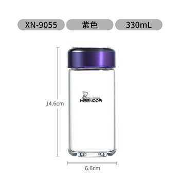 希诺单层玻璃杯子女士加厚泡茶杯便携车载时尚水杯XN-9055紫色 330ml