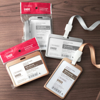 优和(UHOO)工作牌工牌铝合金双面证件卡套 横式 1个卡套+1根挂绳 员工金属胸牌厂牌工作证 金色 6039