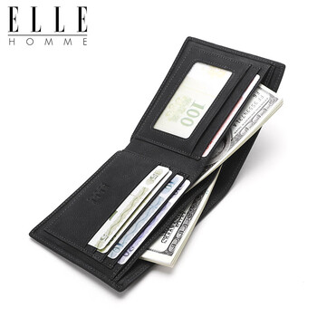 ELLE HOMME男士短款钱包 头层牛皮多功能票夹横款钱夹1520 生日礼物送男友