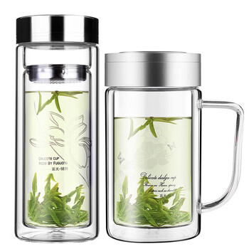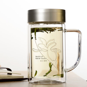 富光 320ML+320ML双层多用泡茶杯 耐热玻璃杯带把水杯子(2只装)