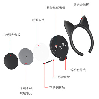 孜泰 手机支架指环扣 桌面懒人超薄卡通创意可搭车载磁吸 苹果/华为/小米/平板通用 黑色