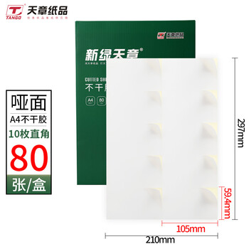 天章 (TANGO)黄底亚面 A4不干胶打印纸 直角10枚/张(105mm*59.4mm)80张/盒 背胶纸标签贴纸 喷墨激光打印机通用
