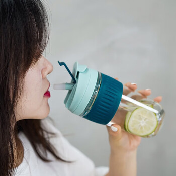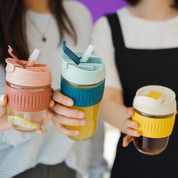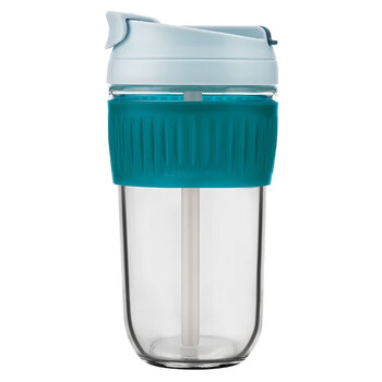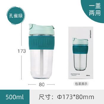 乐扣乐扣(LOCK&LOCK)咖啡杯耐热玻璃水杯子男女学生便携式双饮吸管杯随手杯500ML绿色