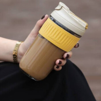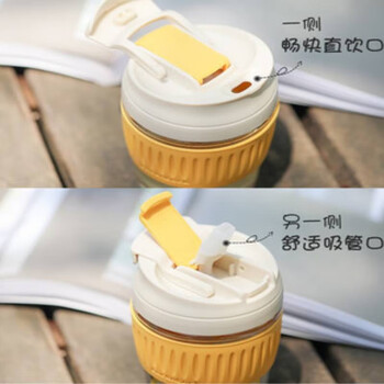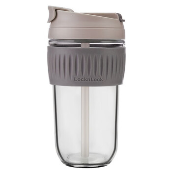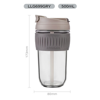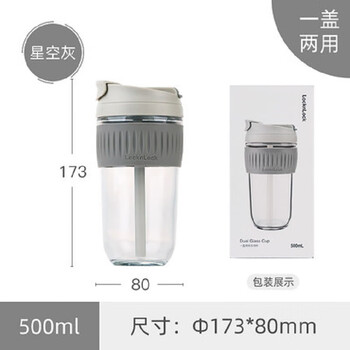 乐扣乐扣(LOCK&LOCK)咖啡杯耐热玻璃水杯子男女学生便携式双饮吸管杯随手杯500ML灰色