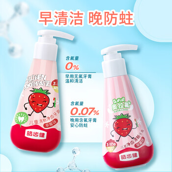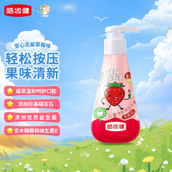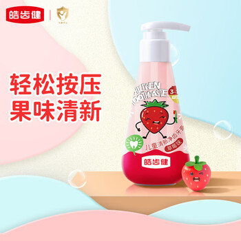 皓齿健(Hosjam)宝宝儿童按压式牙膏无氟不含氟防蛀3-12岁牙膏牙龈护理120g草莓味