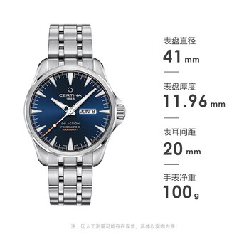 雪铁纳(Certina)瑞士手表动能系列双历显示商务休闲机械钢带男士腕表