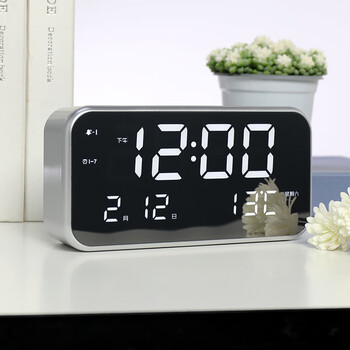 汉时(Hense)大屏电子闹钟桌面时钟床头台钟儿童学生闹表HA801银色旗舰版开学季